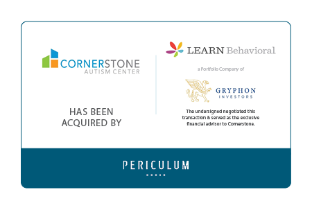 Periculum Capital Company, LLC (“Periculum”) is pleased to announce it advised Cornerstone Autism Center, LLC (“Cornerstone” or the “Company”), a center-based provider of applied behavior analysis (“ABA”) therapy for children with autism spectrum disorder (“ASD”), in its sale to LEARN Behavioral (“LEARN”).
