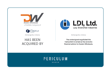 Periculum Capital Company, LLC (“Periculum”) is pleased to announce that it served as the exclusive financial advisor to Dealers Wholesale (“DW” or the “Company”), a portfolio company of The Firefly Group (“Firefly”), in its sale to Lacy Diversified Industries (“LDI”).